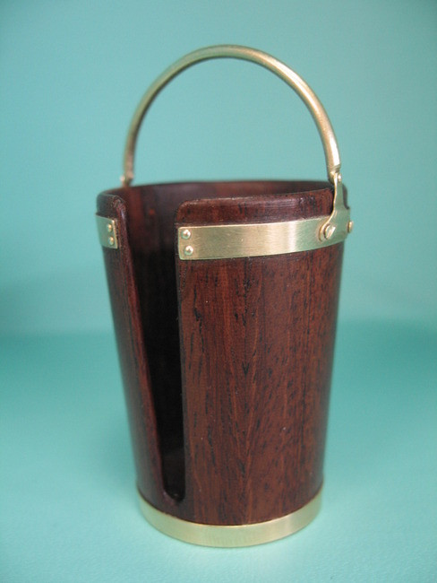 The buckets are made from period mahogany, with coopered construction (as a barrel is made) and brass band bound and brass handles. There are three styles Plain, Ribbed and Spiral Twist carving.
